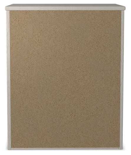 With its clean-lined look and modern attitude, this nightstand is a fresh style awakening. A crisp, white hue over subtle replicated wood grain easily complements other furniture finishes. Smooth drawer fronts with antiqued pewter-tone handles complete the aesthetic.